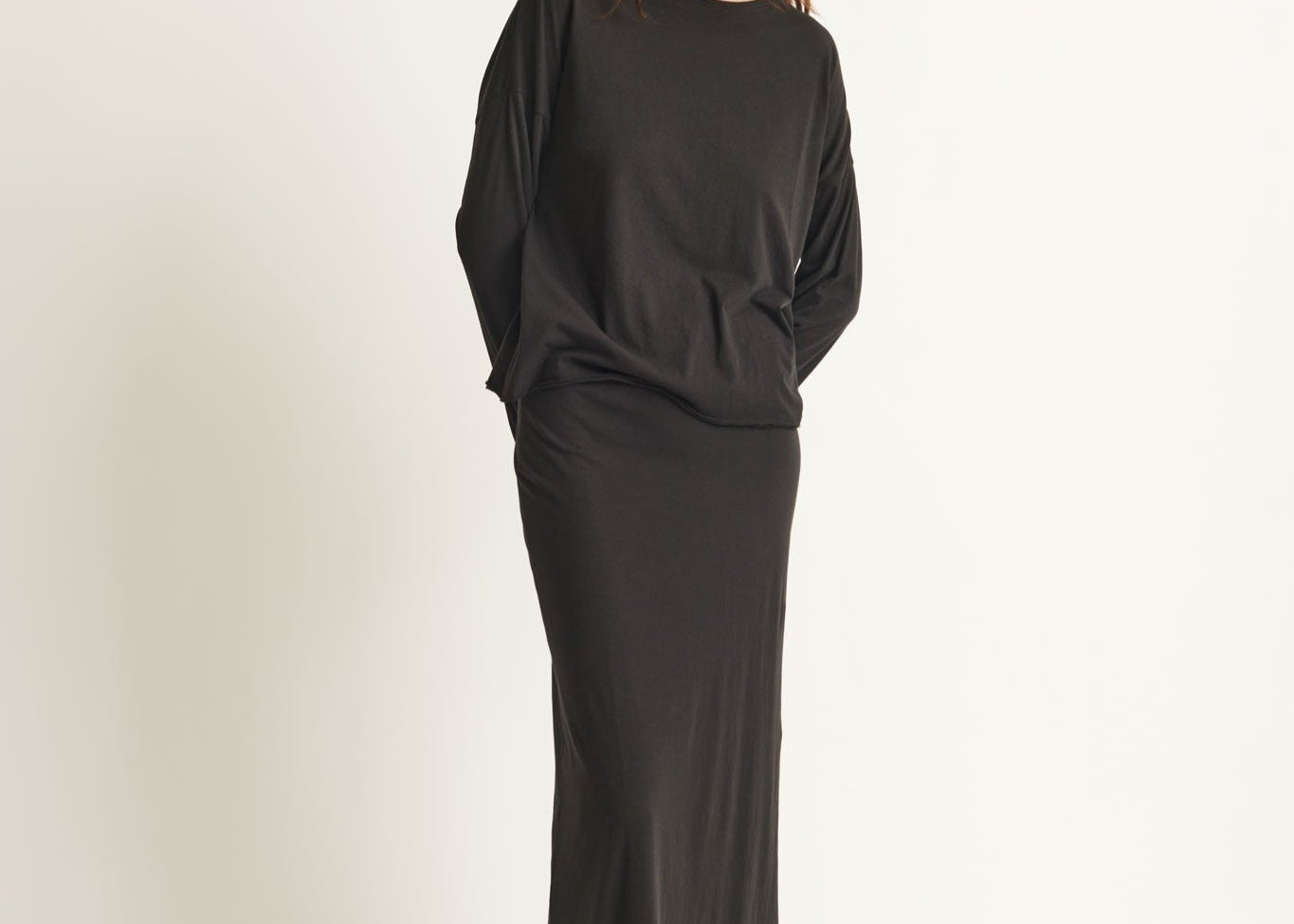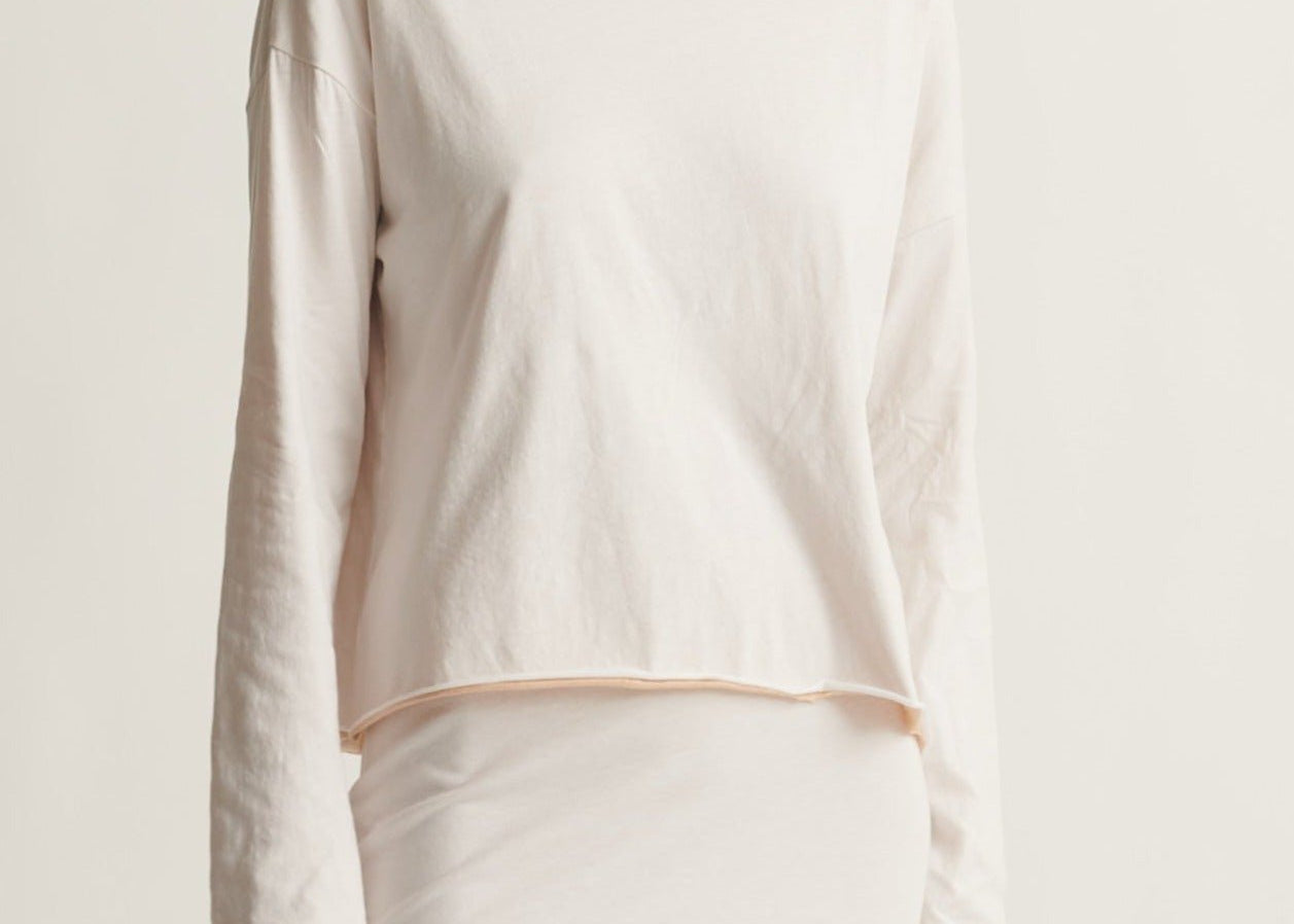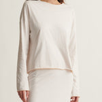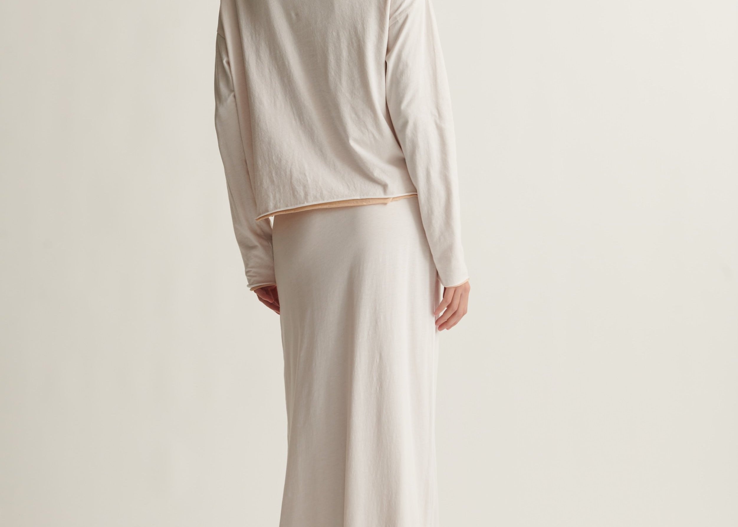The perfectly oversized, long sleeve shirt for those days and nights. Our long sleeved shirt is crafted in ultra soft, lightweight organic pima cotton and double-layered for a contrast at the neckline, sleeves and hem. Pair it with the Double Layer Skirt or Double Layer Short for a matching look.