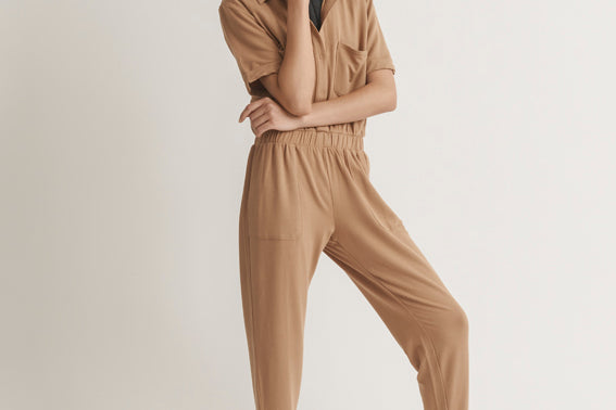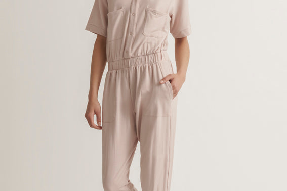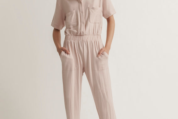 Cool, casual and endlessly comfortable- enjoy relaxing in the classic coziness of our french terry Fortune Jumpsuit.