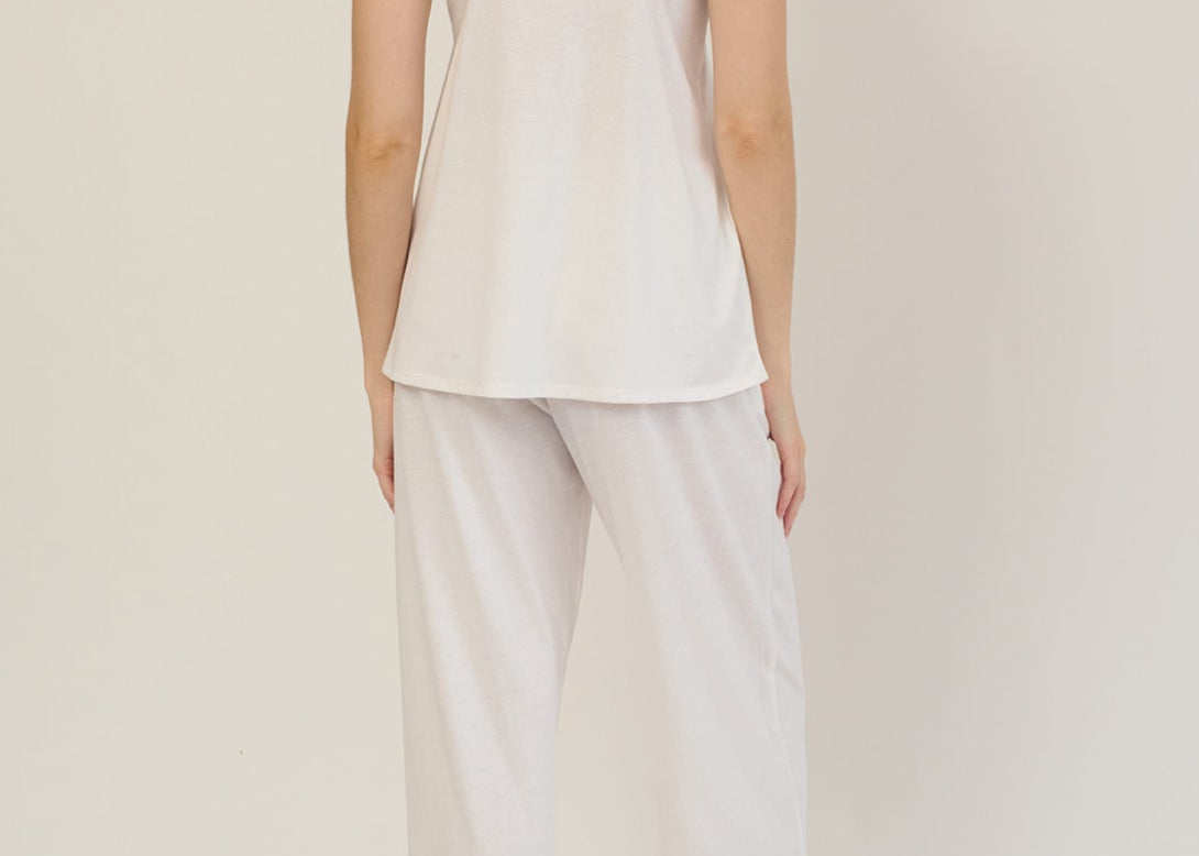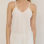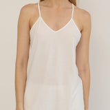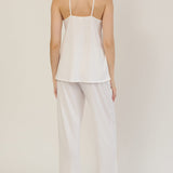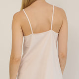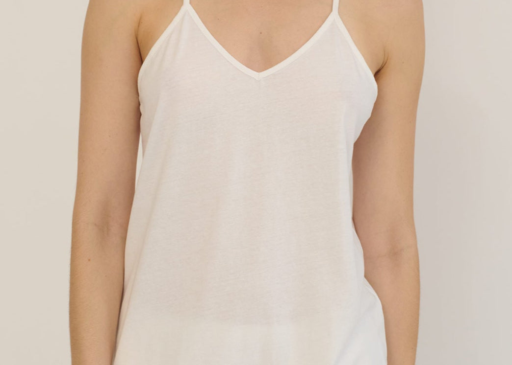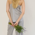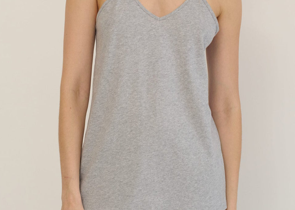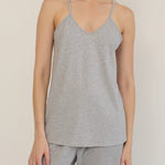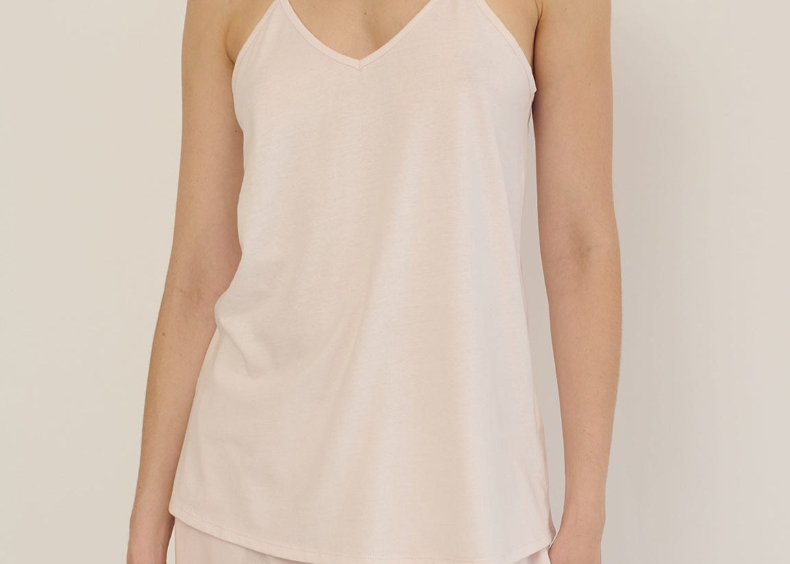 The Jenna Cami is made from brushed organic cotton jersey, offering lightweight comfort with a flattering loose fit. This versatile cami has a soft V-neckline and thin straps, ideal for layering or lounging in style. It’s the perfect addition to your everyday essentials wardrobe. Pair with the Jolie Pant and the Juliana Robe for a matching look.