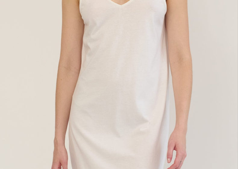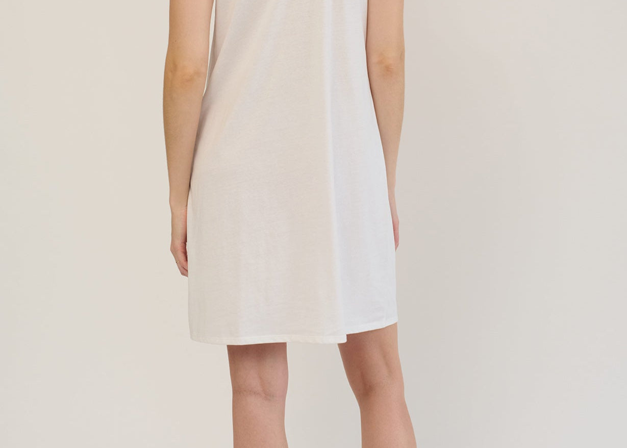 The Josephine Chemise is a convertible day-to-night sleep dress you'll never want to take off. Made from super soft brushed organic cotton jersey, it features a flattering v-neckline and falls right above the knee. Pair with the Juliana Robe for a matching look.