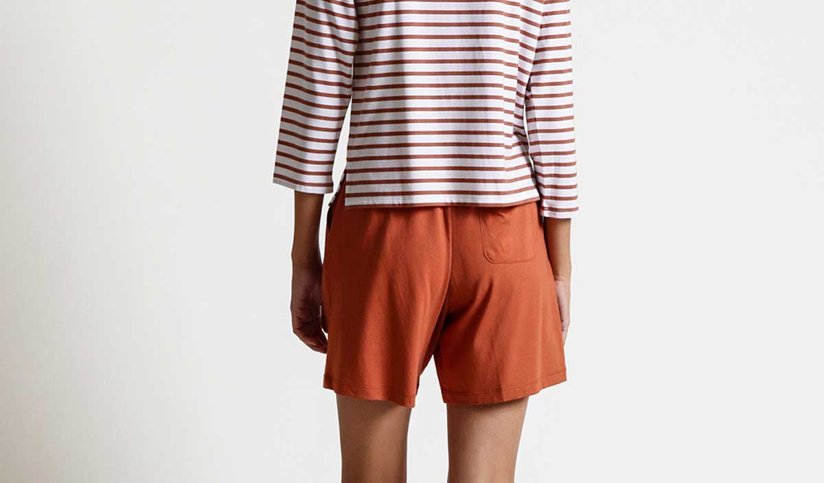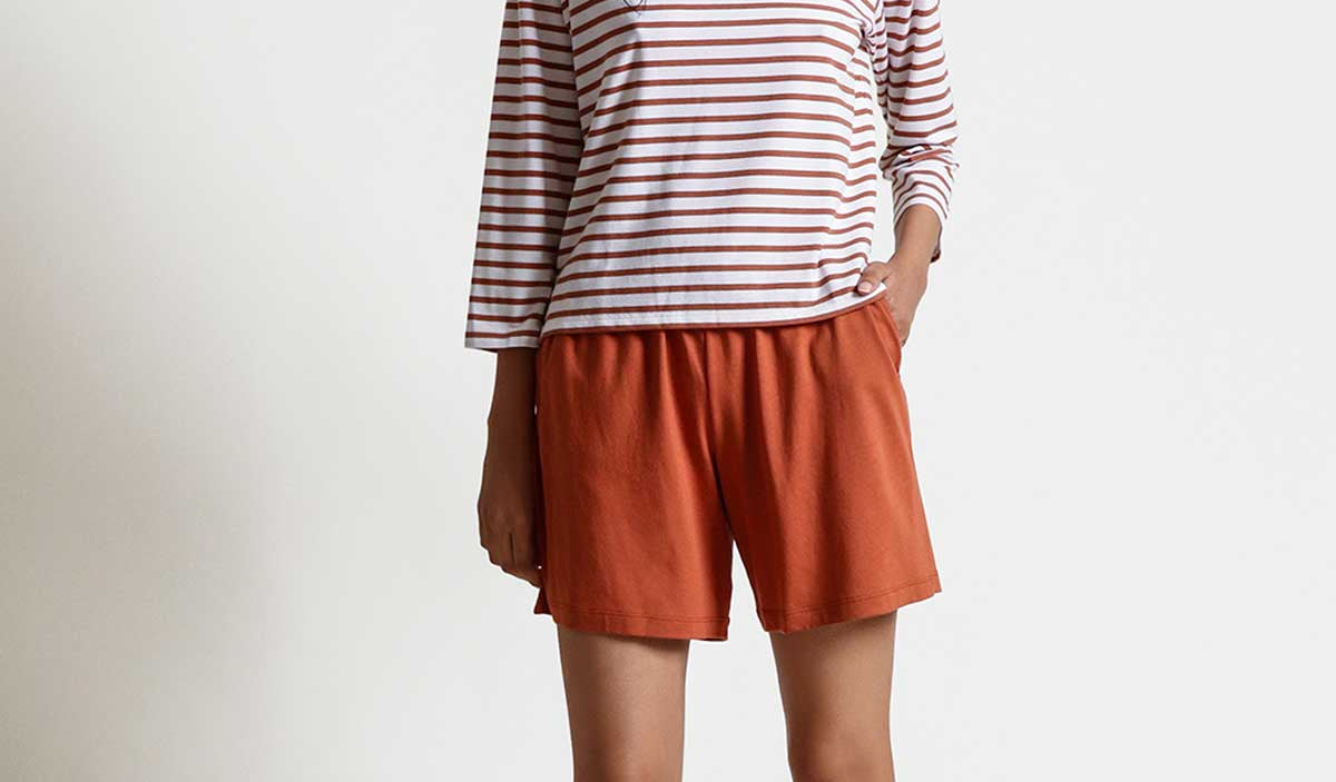 This pair is cut in a relaxed silhouette. It's made of a soft Pima cotton fabric and has two side pockets. Wear yours for lounging with the Mariya Pullover.
